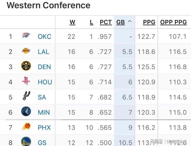 NBA西部最新积分榜:火箭下滑第4,勇士第8,国王第13,快船第14